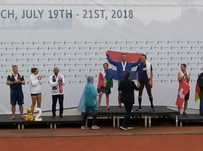 Zondag 22 juli vertrokken we met de bus naar het vliegveld waar we rond 14:05 uur als team; 14 medailles rijker in de de diciplines: halve marathon, schaken, kogelstoten, tennis, badminton, tafeltennis en estafette weer terug naar Schiphol vlogen. Het is elke keer weer een topervaring omdat je tegen collega’s speelt uit zoveel verschillende landen. Ik hoop dat ik over 4 jaar weer mee mag. Dan is het in Barcelona!!”.