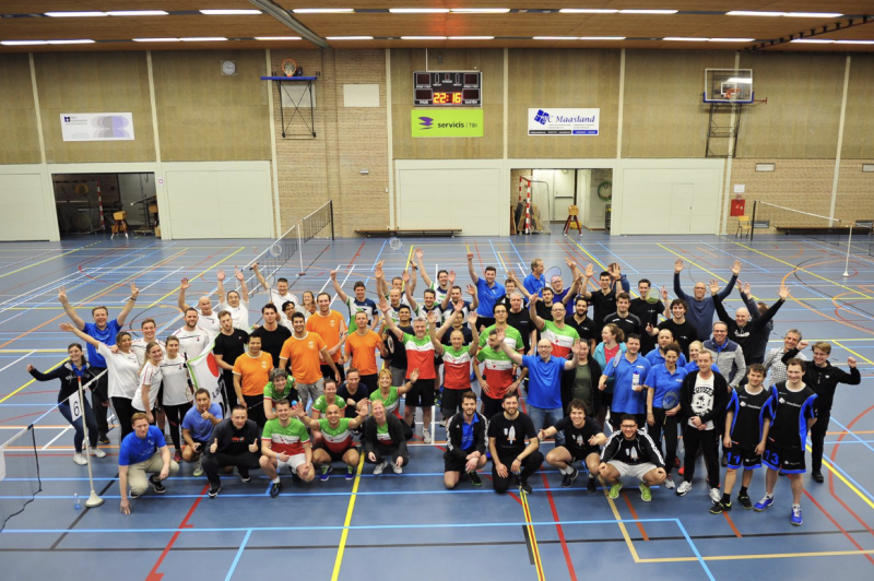 Vrijdag 8 maart organiseerde Badminton Club Maassluis voor de tweede keer in haar bestaan een bedrijventoernooi. Vorig jaar was de eerste keer en met 5 bedrijven kun je praten over een rustige start. Dit jaar is nog meer energie gezet op het binnenhalen van bedrijven en met succes: 16 bedrijven met gemiddeld 6 teamleden kwamen aan de start, in totaal bijna 100 mannen en vrouwen. De avond werd gestart met een warming-up door de beste heer van de vereniging Carl Pastijn. Zijn enthousiasme zorgde snel voor een leuke sfeer en fanatisme bij de spelers. Vervolgens werd een korte demonstratie van A-spelers van Badminton Club Maassluis gegeven.